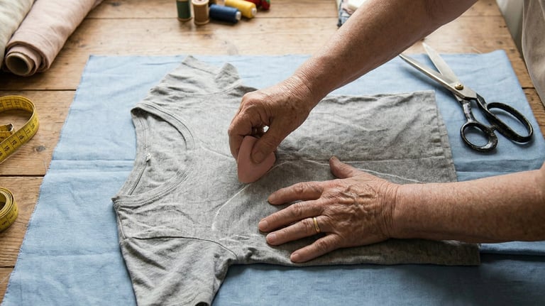 Crea moldes usando tu propia ropa. Aprende a marcar y cortar telas sin matemáticas, aprovechando cada retazo con sencillez.
